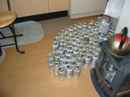 さあ、始めましょう!まずは、空き缶を片付けないと。”岳さんビール飲み過ぎ!”
