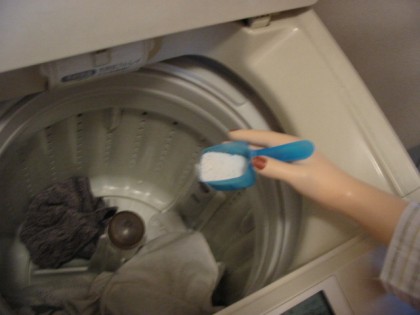 次は洗濯です。でも洗濯は洗濯機がやってくれるので、洗剤を入れるだけです。