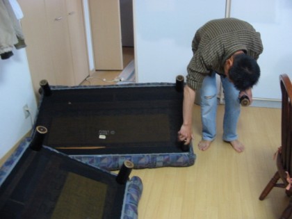 わたしが掃除機をかけているうちに、岳さんがこたつをしまって、ソファに脚を付けてくれました。