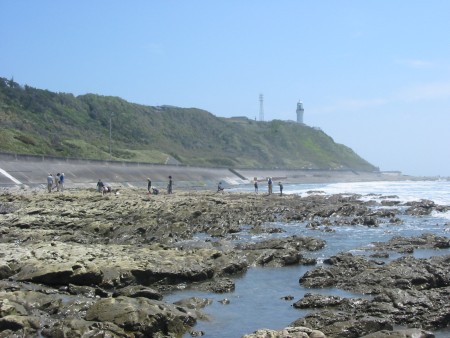 このあたりの海は海底に「砂岩」と言うもろい岩があって、そこにカキが付いています。海が荒れると岩がもろいので付いているカキが取れちゃって、海岸に流れ着くんだそうです。ここ何日かは海が荒れていないので、海岸にはカキは落ちていません。今日は潮が引いた時の岩場の先の岩の間に落ちているカキを拾って来るそうです。