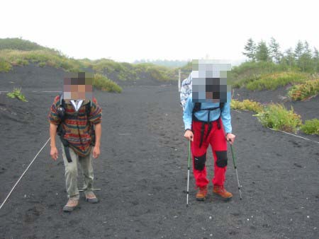 霧は晴れたんですが、火山灰のザクザクにらすかるさん苦しそうです