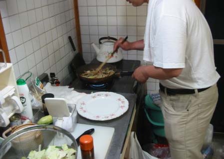 たかいさんは野菜炒めを作ってくれます。転勤になる前は会社でよく作っていたそうです。