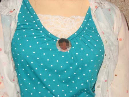 雨宿りしてます。あれ、胸に缶バッジが